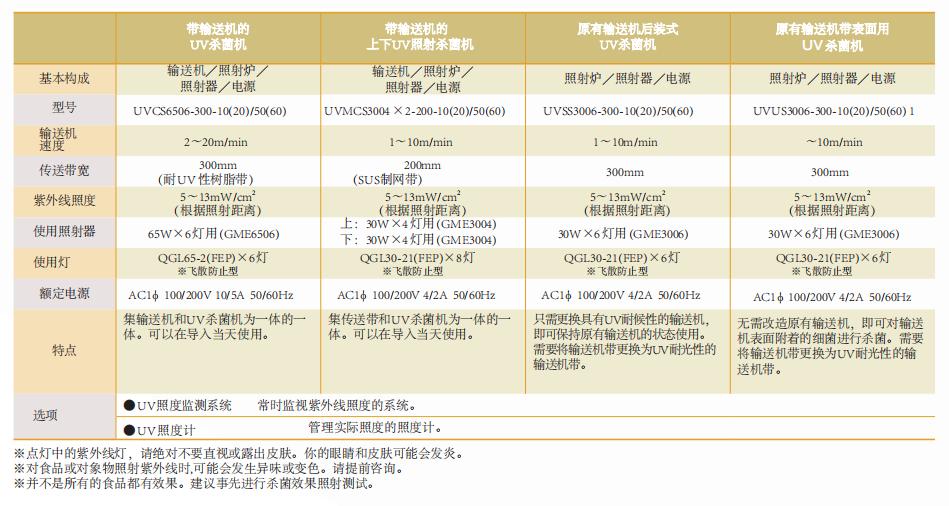 將紫外線裝置與輸送機一體化,具有對各種殺菌對象物進行99.9%殺菌能力的傳送帶系統(tǒng)。在將蓋子、各種容器類、袋子的外包裝等搬入潔凈室前進行無菌化成為不可或缺的要素,是滿足食品工廠和制藥工廠需求的有效殺菌系統(tǒng)。